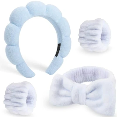 Soft and Cozy: The bow headband and wristbands are made of coral fleece, the cloud headband is made of elastic sponge lining and terry fabric, soft and skin-friendly, highly absorbent, and very comfortable to wear. High quality fabrics allow for washing and reuse. Suitable Size: The bubble skincare set is very elastic, and the makeup headband can be freely adjusted in size by stretching, easily fit your skin perfectly, and the headband has strong anti-slip properties and won't slip off easily, and won't lead pressure on the head, suitable for most people. Cute and Stylish: Our skin care headband and face wash wristband set are cute and fashionable, and will keep your hair or sleeves from getting wet while you wash your face or put on makeup. The cloud edge design of the headband and the big bow on hair band is unique and versatile, and it also slims down your face shape, making you more charming. Wide Application: This headband & hairband for washing face and face washing wristband set is suitable for daily hair accessories, face wash, bath, spa, cosmetology, skin care, makeup, beauty salon care, etc. It allowing you to always stay beautiful in your daily life. Package List: The headbands for women set contains 1 pcs headband, 1 pcs hair tie and 2 pcs wristbands. You can give them to your girlfriend, mother, daughter and any other women and girls. It is also a great choice for birthday parties, anniversaries, Valentine's Day, Mother's Day, Christmas, Halloween and other holidays.
