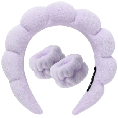 Amazon Made of sponge and terry fabric, these spa headbands are durable and lightweight. The edges and corners of the sponge headband will not hurt the back of your ears like most headbands. The wristbands are made of high quality coral fleece, soft and comfortable. With good elastic, the makeup headband size is extendable due to its semi-open design, won't lead pressure on the head, and could be stretched to fit your head circumference, not easy to slide off. The wristband also has good elasticity and can be stretched for a better fit on the wrist. These skincare headbands and wristbands are highly absorbent and can be used when washing your face, skin care, make-up, removing make-up, applying masks and spa treatments. It prevents your hair from getting wet while washing your face. Fluffy headband, like flowers and white clouds, unique and versatile. Appropriate width and thickened sponge design can modify the face shape, cute appearance makes you more charming. Package: with 1 spone hairband and 2 wristbands in the parcel. Give it as a perfect gift to your girlfriend, sisters, and mother on anniversaries, birthdays, valentine's day, mother's day, or any other festival.