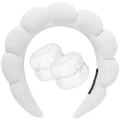 Made of sponge and terry fabric, these spa headbands are durable and lightweight. The edges and corners of the sponge headband will not hurt the back of your ears like most headbands. The wristbands are made of high quality coral fleece, soft and comfortable. With good elastic, the makeup headband size is extendable due to its semi-open design, won't lead pressure on the head, and could be stretched to fit your head circumference, not easy to slide off. The wristband also has good elasticity and can be stretched for a better fit on the wrist. These skincare headbands and wristbands are highly absorbent and can be used when washing your face, skin care, make-up, removing make-up, applying masks and spa treatments. It prevents your hair from getting wet while washing your face. Fluffy headband, like flowers and white clouds, unique and versatile. Appropriate width and thickened sponge design can modify the face shape, cute appearance makes you more charming. Package: with 1 spone hairband and 2 wristbands in the parcel. Give it as a perfect gift to your girlfriend, sisters, and mother on anniversaries, birthdays, valentine's day, mother's day, or any other festival.