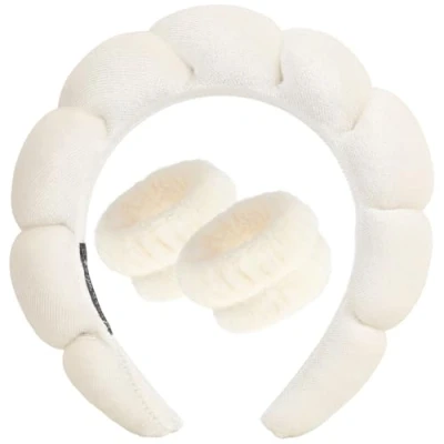 Made of sponge and terry fabric, these spa headbands are durable and lightweight. The edges and corners of the sponge headband will not hurt the back of your ears like most headbands. The wristbands are made of high quality coral fleece, soft and comfortable. With good elastic, the makeup headband size is extendable due to its semi-open design, won't lead pressure on the head, and could be stretched to fit your head circumference, not easy to slide off. The wristband also has good elasticity and can be stretched for a better fit on the wrist. These skincare headbands and wristbands are highly absorbent and can be used when washing your face, skin care, make-up, removing make-up, applying masks and spa treatments. It prevents your hair from getting wet while washing your face. Fluffy headband, like flowers and white clouds, unique and versatile. Appropriate width and thickened sponge design can modify the face shape, cute appearance makes you more charming. Package: with 1 spone hairband and 2 wristbands in the parcel. Give it as a perfect gift to your girlfriend, sisters, and mother on anniversaries, birthdays, valentine's day, mother's day, or any other festival.