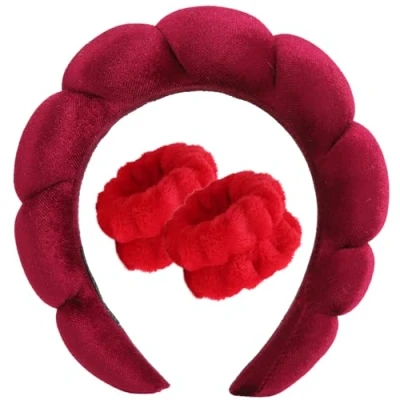 Amazon Made of sponge and terry fabric, these spa headbands are durable and lightweight. The edges and corners of the sponge headband will not hurt the back of your ears like most headbands. The wristbands are made of high quality coral fleece, soft and comfortable. With good elastic, the makeup headband size is extendable due to its semi-open design, won't lead pressure on the head, and could be stretched to fit your head circumference, not easy to slide off. The wristband also has good elasticity and can be stretched for a better fit on the wrist. These skincare headbands and wristbands are highly absorbent and can be used when washing your face, skin care, make-up, removing make-up, applying masks and spa treatments. It prevents your hair from getting wet while washing your face. Fluffy headband, like flowers and white clouds, unique and versatile. Appropriate width and thickened sponge design can modify the face shape, cute appearance makes you more charming. Package: with 1 spone hairband and 2 wristbands in the parcel. Give it as a perfect gift to your girlfriend, sisters, and mother on anniversaries, birthdays, valentine's day, mother's day, or any other festival.