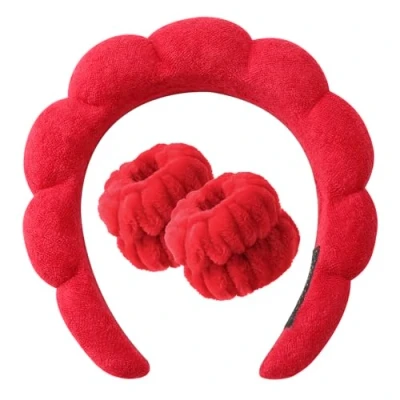 Amazon Made of sponge and terry fabric, these spa headbands are durable and lightweight. The edges and corners of the sponge headband will not hurt the back of your ears like most headbands. The wristbands are made of high quality coral fleece, soft and comfortable. With good elastic, the makeup headband size is extendable due to its semi-open design, won't lead pressure on the head, and could be stretched to fit your head circumference, not easy to slide off. The wristband also has good elasticity and can be stretched for a better fit on the wrist. These skincare headbands and wristbands are highly absorbent and can be used when washing your face, skin care, make-up, removing make-up, applying masks and spa treatments. It prevents your hair from getting wet while washing your face. Fluffy headband, like flowers and white clouds, unique and versatile. Appropriate width and thickened sponge design can modify the face shape, cute appearance makes you more charming. Package: with 1 spone hairband and 2 wristbands in the parcel. Give it as a perfect gift to your girlfriend, sisters, and mother on anniversaries, birthdays, valentine's day, mother's day, or any other festival.