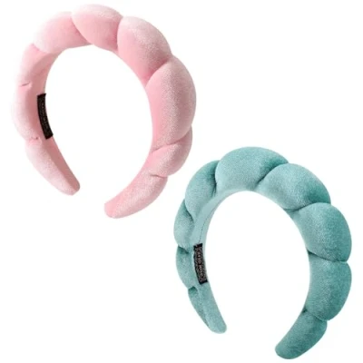 Amazon Made of sponge and terry fabric, these spa headbands are durable and lightweight. The edges and corners of the sponge headband will not hurt the back of your ears like most headbands. It also prevents your hair from being crushed. With good elastic, the makeup headband size is extendable due to its semi-open design, won't lead pressure on the head, and could be stretched to fit your head circumference. Also not easy to slide off, loved by many ladies. This skincare headband is highly absorbent and can be used when washing your face, skin care, make-up, removing make-up, applying masks and spa treatments. It prevents your hair from getting wet while washing your face. Fluffy headband, like flowers and white clouds, unique and versatile. Appropriate width and thickened sponge design can modify the face shape, cute appearance makes you more charming. Package: with 2 pieces of spone hairband in the parcel. Give it as a great choice to your girlfriend, sisters, and mother on birthdays, anniversaries, valentine's day, mother's day, or any other festival.