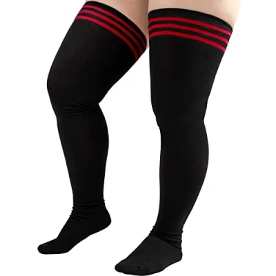 Plus Size Extra Long Socks: The length from top to heel of the thigh high socks is about 80cm/31.5”, the width of the stocking mouth is about 11cm/4.3” (can be stretched to 21cm/8.3”), and the toe to the heel is about 20cm/7.9”. One size fits most. Elastic Material: These stretchy tube socks are crafted from quality polyester and cotton blends, soft, flexible, comfortable, durable, and breathable. The good elasticity makes the cotton socks stay up nonslip and stay put. Style Diversity: These plus size extra long leg warmer stockings are in Minimalist, Classic, Vintage, Casual and Sporty style, which means you can be Cute, Sexy, and Stylish with the striped socks, show your vigor and spike your confidence. Versatile: The plus size extra long leg warmer stockings are suitable for daily wear, cosplay, dancing, yoga, and sports. Cute boots socks for women add a playful touch to your look when worn with mini skirts and shorts. Stylish to wear with boots, booties, over stockings, jeans, leggings, or skinny pants. The must-haves socks are ideal gifts for girls and women. Package: 1 pair of plus size extra long leg warmer stockings in one parcel.