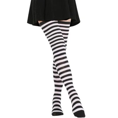 DRESHOW Women Extra Long Thigh High Socks Thin Stripes Tube Tights Over Knee Casual Boot Stockings