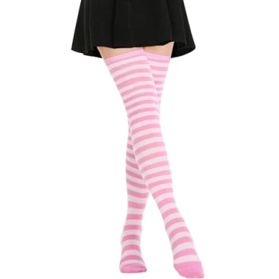 DRESHOW Women Extra Long Thigh High Socks Thin Stripes Tube Tights Over Knee Casual Boot Stockings