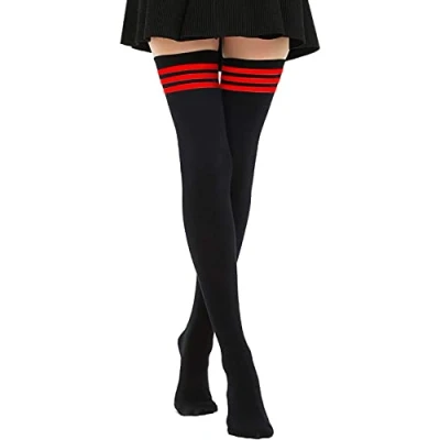 DRESHOW Women Extra Long Thigh High Socks Thin Stripes Tube Tights Over Knee Casual Boot Stockings
