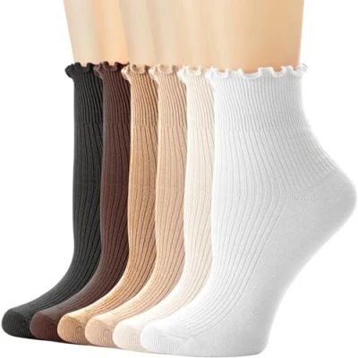 Amazon High-quality fabrics: Crafted from 80% Cotton, 17% Polyester, 3% Spandex, our womens ankle socks offer a soft, smooth texture for unbeatable comfort. With exceptional breathability, your feet stay refreshingly dry all day long. Ruffle turn-cuff design: can be worn pulled up or folded over, making you special, Womens socks turn-cuff with trim,with frilly cuff, high stretch design bring you sexy and younger feeling, catch more eyesight, make you have a very sweet feeling. Appropriate Size: Fit womens shoe sizes 4-7. One size fist most women and girls, soft breathable provides a more health and confortable fit, perfect for all seasons, machine washable, cold water wash, no bleach, very comfortable, breathable and lightweight. Applicable occasions: Suitable for different situation, you can wear them as office, hiking, sport, school, home, work, prom, party, ankle socks, match all kinds of shoes, not too thick or too thin, stretchy cuff to accommodate any size ankle. Excellent gift choice: Perfect gift for mother, sister, girls, girlfriend as a holiday gift, such as Mother's Day gifts, Valentine's Day gifts, birthday gifts, Christmas gifts, New Year gifts.