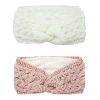 DRESHOW Women Warm Knitted Headband Winter Ear Warmer Crochet Head Wraps Thick Fleece Lining Hair Bands