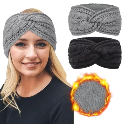 DRESHOW Women Warm Knitted Headband Winter Ear Warmer Crochet Head Wraps Thick Fleece Lining Hair Bands