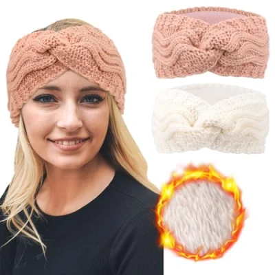 DRESHOW Women Warm Knitted Headband Winter Ear Warmer Crochet Head Wraps Thick Fleece Lining Hair Bands