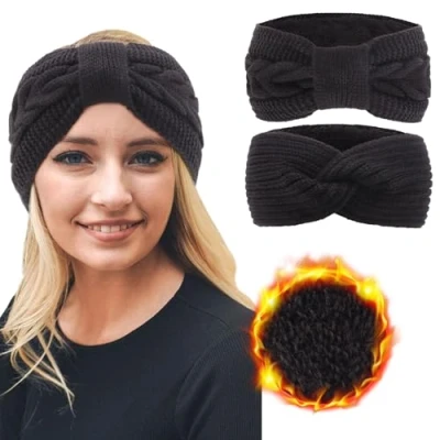 Our warm knitted headbands are crafted from high-quality acrylic wool, lined with cozy fuzzy fleece, soft, thick, and comfortable. The thick ear warmer headwrap can protect your head and ears from the cold winter weather. One Size Fits Most: Extra warm and cozy with its lined fuzzy fleece inside. The elasticity of the fleece lined headband is a little less than that of the single-layer one, so it may feel a little tight at first, but after wearing it for a while, it will be very easy. This warm knitted hair band is suitable for skating, skiing, walking to class, exercising in the cold, walking a dog, other outdoor activities, and daily life. Multiple colors and styles of knitted winter headbands for you to choose from. It matches well with your winter outfits, you can add a pop of style and fun with some cute boots, jeans, jackets, sweaters, scarves, leggings, or a winter coat. Package: with 2 pieces of fleece lined crochet knitted headband ear warmer inside the parcel.