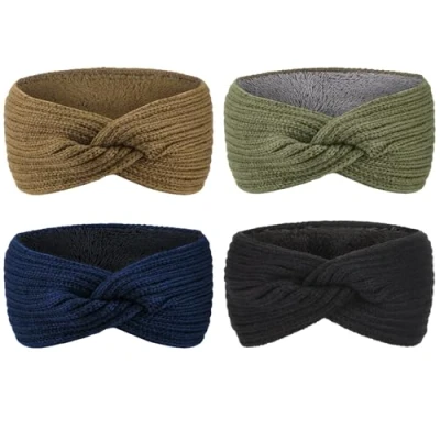 Our warm knitted headbands are crafted from high-quality acrylic wool, lined with cozy fuzzy fleece, soft, thick, and comfortable. The thick ear warmer headwrap can protect your head and ears from the cold winter weather. One Size Fits Most: Extra warm and cozy with its lined fuzzy fleece inside. Combines plenty of stretch with a snug fit. This chunky knit turban headband fits most women and girls. This warm knitted hair band is suitable for skating, skiing, walking to class, exercising in the cold, walking a dog, other outdoor activities, and daily life. Multiple colors and styles of knitted winter headbands for you to choose from. It matches well with your winter outfits, you can add a pop of style and fun with some cute boots, jeans, jackets, sweaters, scarves, leggings, or a winter coat. Package: with 4 pieces of fleece lined crochet knitted headband ear warmer inside the parcel.
