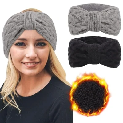 Our warm knitted headbands are crafted from high-quality acrylic wool, lined with cozy fuzzy fleece, soft, thick, and comfortable. The thick ear warmer headwrap can protect your head and ears from the cold winter weather. One Size Fits Most: Extra warm and cozy with its lined fuzzy fleece inside. The elasticity of the fleece lined headband is a little less than that of the single-layer one, so it may feel a little tight at first, but after wearing it for a while, it will be very easy. This warm knitted hair band is suitable for skating, skiing, walking to class, exercising in the cold, walking a dog, other outdoor activities, and daily life. Multiple colors and styles of knitted winter headbands for you to choose from. It matches well with your winter outfits, you can add a pop of style and fun with some cute boots, jeans, jackets, sweaters, scarves, leggings, or a winter coat. Package: with 2 pieces of fleece lined crochet knitted headband ear warmer inside the parcel.