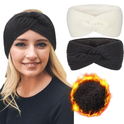 Our warm knitted headbands are crafted from high-quality acrylic wool, lined with cozy fuzzy fleece, soft, thick, and comfortable. The thick ear warmer headwrap can protect your head and ears from the cold winter weather. One Size Fits Most: Extra warm and cozy with its lined fuzzy fleece inside. The elasticity of the fleece lined headband is a little less than that of the single-layer one, so it may feel a little tight at first, but after wearing it for a while, it will be very easy. This warm knitted hair band is suitable for skating, skiing, walking to class, exercising in the cold, walking a dog, other outdoor activities, and daily life. Multiple colors and styles of knitted winter headbands for you to choose from. It matches well with your winter outfits, you can add a pop of style and fun with some cute boots, jeans, jackets, sweaters, scarves, leggings, or a winter coat. Package: with 2 pieces of fleece lined crochet knitted headband ear warmer inside the parcel.
