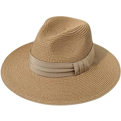 DRESHOW Women Wide Brim Straw Panama Roll up Hat Fedora Beach Sun UPF 50+