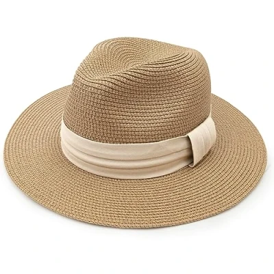 DRESHOW Women Wide Brim Straw Panama Roll up Hat Fedora Beach Sun UPF 50+
