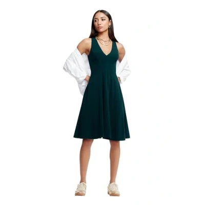 Dress the Population Women's Catalina Solid Sleeveless Fit & Flare Midi Dress, Peacock Blue, M