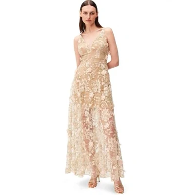 Dress the Population Women's Embellished Plunging Gown Sleeveless Long Dress, Sidney Pink Floral, S
