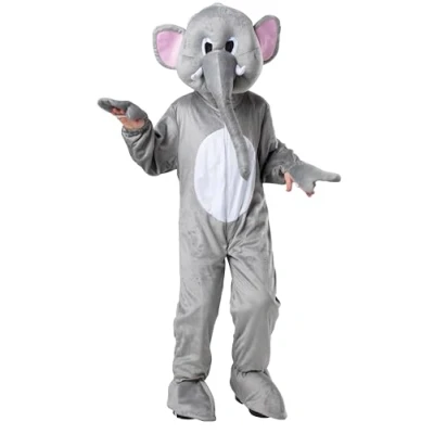 Amazon MarketplaceOut Of The Jungle - This elephant mascot includes a jumpsuit and head mask. The mascot is available in sizes for kids. Comfort - The grey jumpsuit features a zipper closure in the front and attached hand and shoe covers. The hands and feet feature elastic for extra comfort. Practical - The included face mask features mesh eyes and an opening at the mouth for ventilation. It has a hook and loop closure in the back for a secure fit. Great Quality - The mascot is made of the finest quality material for the utmost durability and comfort. The costume is machine washable and hang dry. Great For Multiple Occasions - The costume is great for halloween, themed parties, team mascots, fundraisers and so many other occasions., Manufacturer: Dress Up America
