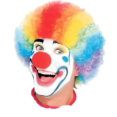 Complete Costume Wig: This product comes ready with a vibrant, multi-colored clown wig, providing everything you need to instantly complete your costume. Perfect for parties, performances, or playful events, it ensures you stand out with a fun and festive look. Eye-Catching Color Extravaganza: Featuring a bold mix of bright, eye-catching colors, this wig delivers maximum visual impact. The playful, multicolored design adds energy and excitement to any clown outfit, making it ideal for both children and adults. Durable Polyester Construction: Made from 100% high-quality polyester, this wig is built to last. It resists most chemicals, stretching, shrinking, wrinkles, mildew, and abrasion, keeping its vibrant colors and shape even after repeated wear and storage. Easy Styling for Maximum Volume: Achieve the perfect clown hairstyle by shaking and fluffing the hair into place before wearing. The lightweight, flexible fibers allow you to create a full, bouncy look that stays fun and dramatic throughout any event. Authentic Costume Accessory: Add the final touch to your clown ensemble with this high-quality wig. Ideal for costume parties, theatrical performances, or playful everyday dress-up, it ensures an authentic, professional look that completes your overall appearance.
