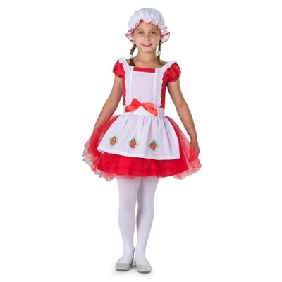 STRAWBERRY BALLERINA COSTUME FOR KIDS - Includes a red and white strawberry-themed ballerina dress designed for dress-up, costume events, and role-play. Available in sizes T2, T4, Small (4–6), Medium (8–10), and Large (12–14). DESIGN DETAILS - Features a red dress with an attached white apron trimmed with strawberry accents, a large red bow, cap sleeves, and a layered red tulle skirt. SUITABLE FOR MULTIPLE OCCASIONS - Appropriate for Halloween, costume parties, school events, dance performances, or everyday dress-up play. MATERIAL & CARE INSTRUCTIONS - Made of 100% polyester. Machine washable; cold wash recommended for best results. QUALITY COSTUME DESIGN - Dress Up America Red Strawberry Ballerina costume is designed with attention to detail and made for dress-up play, themed events, and costume occasions.