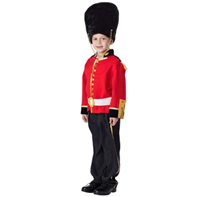 EVERYTHING YOUR LITTLE ONE NEEDS TO PROTECT THE ROYALS: With the Royal Guard Costume, your son will look and act the part. Comes complete with; jacket, pants, belt, and bearskin hat AMAZING AND EXQUISITE DETAILS: Red jacket comes with a black mandarin collar and gold trimmings, authentic-looking gold buttons, and a white belt. Black pants has gold stripes down the side. Authentic bearskin hat has a gold chain. DURABLE AND COMFORTABLE: Made with the finest quality material so that your little solider can serve in comfort and style. Pants feature an elastic waistband for an easy and comfortable fit. Easy wash and care. GREAT FOR ALL YEAR ROUND: Why stop at Halloween? This costume is great for the stage, role play, birthday parties, or practically anywhere. SATISFACTION GUARANTEED - Dress Up America works hard to ensure that they only carry top of the line products. However, if you have any issue with the Royal Guard Costume For Kids at any time, please contact our friendly customer service team, and we will be sure to resolve any issue right away, Manufacturer: Dress Up America