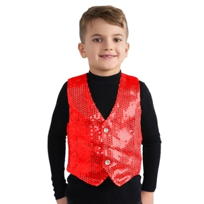 Dress Up America Sequin Vest Kids Shiny Dance Sparkly Waistcoat For Red Party Costume