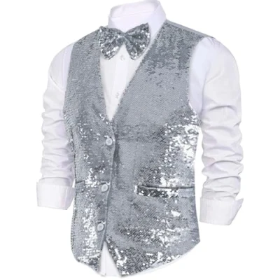 2 PIECE SET - Includes a stunning sequin vest and a matching bow tie. Available in three dazzling colors—red, silver, and gold—perfect for any festive occasion. PRACTICAL AND COMFORTABLE - Fully lined and expertly tailored for top-quality construction, featuring a front button closure, a satin-like back for added comfort, and an adjustable buckle for a perfect fit. HIGH-QUALITY MATERIALS - Made with premium materials for durability and comfort, these vests are machine washable and recommended to hang dry. PERFECT FOR ALL AGES - Available in junior and adult sizes, making it ideal for family events, performances, or themed parties. The kids' sizes range from small to extra-large, ensuring a great fit for everyone. VERSATILE FOR ANY OCCASION - Perfect for performances, parties, weddings, or holiday events, these vests add a touch of sparkle to any outfit or celebration., Manufacturer: Dress Up America