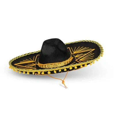 HOLA AMIGOS - Dress up as a Mexican with this realistic-looking Sombrero hat. With the multiple color finishes to choose from, this makes a great fiesta hat. REALISTICALLY DESIGNED - The large black hat has a silver stitching design on the brim and a silver band around the center. PRACTICAL WEAR - The sombreros feature an adjustable strap under the chin to adjust to your comfort. The practical design will have you wearing them all evening long. FAMILY FUN - The costume hat is available in sizes for kids and adults and 3 different color trims; red, green, and gold. MEXICANOS - The traditional hat will promote pretend play and hours of fun! Complete any costume with these hats or they are great on their own., Manufacturer: Dress Up America