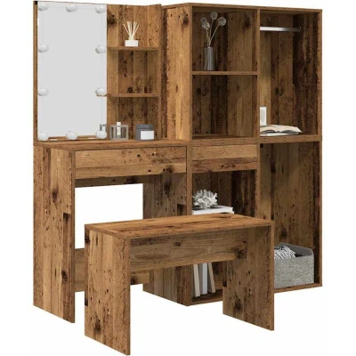 Dressing Table Set with led Old Wood Engineered Vidaxl