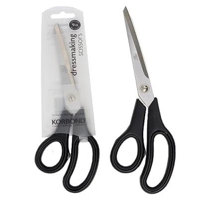 DRESSMAKING SCISSORS 9 INCH by Korbond Soft Grip Professional Scissors, Household Fabric Paper Scissors. AMBIDEXTROUS For Right & Left Handed , Black