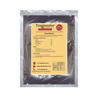 This dried pig’s blood is perfect for making black pudding and blood sausages. Blood sausages have been made for thousands of years and every country has its own recipes. Different cultures and /or regions have their own versions of blood sausage. These recipes are generally variable takes on a similar theme. Whatever the name – Black pudding (UK, Ireland), Boudin noir (France), Blutwurst (Germany), Morcilla (Spain), Jelito (Czech), Kaszanka (Poland), or Mustamakkara (Finland). Simply dissolve in water. Suggested usage rate is 1 part blood to 6-7 parts water.