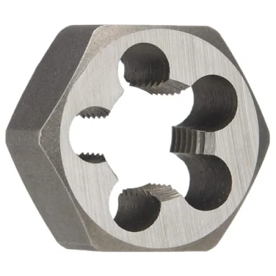 Made of carbon steel Right-hand cut tools have a cutting action that engages when they are run in a clockwise direction Hex die is for dressing over bruised or rusty threads No special holder is required for this type of die, any wrench large enough will suffice Ideal for maintenance in the shop or field