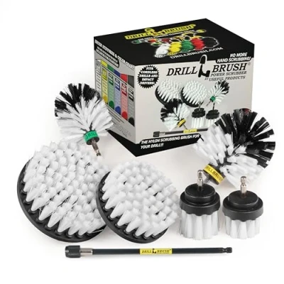 Six (6) piece set includes a variety of size and shape washing, scrubbing, and detailing brushes. A seven (7) inch long-reach extension is included that works with all drill brushes. Our white brushes have soft bristles for scratch free cleaning and scrubbing. All feature rugged steel shafts with a quarter-inch quick-change attachment for fast change out of components. Clean Aluminum, magnesium, chrome, clear coated, and painted rims and wheels for cars, trucks, and motorcycles. Six (6) piece set includes a variety of size and shape washing, scrubbing, and detailing brushes. A seven (7) inch long-reach extension is included that works with all drill brushes. Our white brushes have soft bristles for scratch free cleaning and scrubbing. All feature rugged steel shafts with a quarter-inch quick-change attachment for fast change out of components. Clean Aluminum, magnesium, chrome, clear coated, and painted rims and wheels for cars, trucks, and motorcycles. Do you need to get into tight spaces or hard-to-reach areas? Included are a pair of two-inch diameter (one short bristle, and one long bristle) brushes for all of those hard to reach spots like around lug nuts, in between mag wheel spokes, or narrow areas of carpeting Use the detachable, extra reach 7-inch extension for unprecedented access into the narrowest of spots. The extension allows even greater access to detail every inch of your ride. The long reach extension attachment allows you to hold the outer shell for precise control while the shaft spins inside. This design is superior to bare extender rods that cannot be controlled at all This car/boat cleaning kit includes two of our most popular power scrubbers: The Drillbrush Original Power Scrubber (one full size and one MINI size) corner and contour brushes in a soft white version. Use these classic contour brushes to clean car and motorcycle wheels, RVs, Boats, Jet Skis, Jeeps and off-road vehicles. Interior grime, stains and spills are no match for the rotary scrubbing action of The Original Drillbrush Power Scrubber Tackle large areas like Tonneau covers, large carpeted surfaces, or boat hulls quickly with the 4-inch flat brush and larger 5-inch diameter brush for bigger areas, Weight: 1.0 Pounds, Manufacturer: Drillbrush