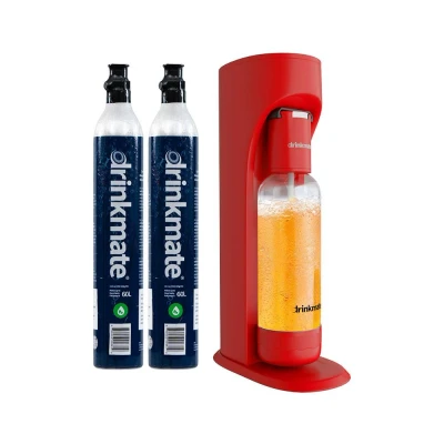 DrinkMate OmniFizz Sparkling Water and Soda Carbonator, Sparkles Any Drink, Includes 1L Re usable BPA Free Carbonating Bottle, Two 60L CO2 Cylinders Patented Fizz Infuser (Royal Red)