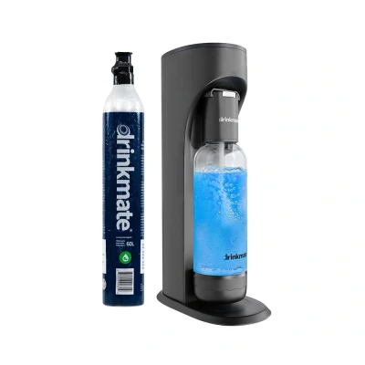 Drinkmate Sparkling Cocktail Mocktail Wine Juices and Water Maker, Carbonates Any Drink with Push Button Simplicity, 1L bottle 60 Litre CO2 cylinder, Matte Black