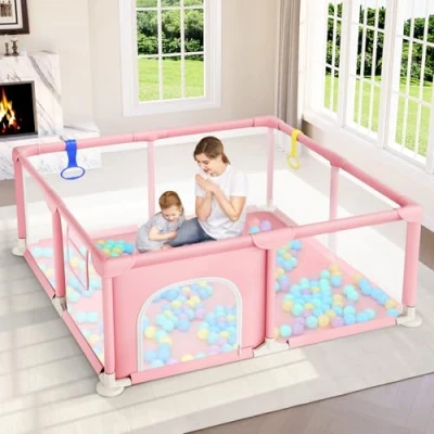【Special Gift Ideas】Dripex baby playpen is a versatile gift for all ages that not only provides a safe and fun baby activity centre for your little ones but also reduces the stress of caregivers such as parents or grandparents not having to chase kids around, giving them some free time to relax, so it's a double benefit 【Baby Safety Guardian】Dripex playpen for baby and toddlers is made of high-quality washable 210D Oxford cloth. It is more abrasion, tear, and stain resistant than 150D Oxford cloth, which most brands use. The play pen is tightly stitched and fully lined with a padded fabric filled with soft cotton. It eliminates the risk of pinching and head bumps 【Relieves Parents】When doing housework, you can place baby in the playpens in peace. See-through mesh provides you with 360° full-view, so you can keep an eye on babies at all times. The zippered door of the play pen babies and toddlers can only be opened from outside. So, a visible baby pen is also a thoughtful gift for parents who don't have to worry about baby getting out 【Help Baby Grow Better】The baby play pen gives your baby plenty of play space to practice crawling, standing, walking, running, and other movements. The included colorful pull ring not only helps your baby build arm strength but also helps them have more fun while learning to stand 【Easy To Install & Clean】The Dripex baby playpen is designed as a square, so all the steel tubes are the same length. No need to struggle to recognize. You can install it in less than 30 minutes with no tools. Installation has never been easier! Beaises, Dripex baby play pen is made of washable Oxford fabric, you can easily clean milk and urine stains with a damp cloth and soap 【Wide Applicability】Dripex baby playpen fits different sizes of homes. You can put it in the living room, bedroom, children's room, etc. As 1-5 year old boy and girls gift, our playpen for baby and toddlers is big enough for your little one to store toys, crawl, walk, play, and read. NOTE: There is no ocean ball in the baby play pen