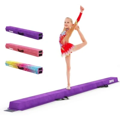 Dripex Kids Balance Beam 240cm Portable Folding with Carry Handles, High Density EVA Faux Suede Gymnastics for Home Gym Exercise