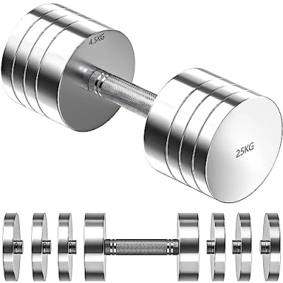 Compact & Durable -- Dripex dumbbells are forged from solid steel and have the unique advantages of great weight, high density and small size. Compared to traditional cast iron dumbbells, it is more exquisite and compact. For people who want to build muscles and do strength training is a perfect choice. Adjustable Weights -- Weight plates for dumbbells can be removed, just rotate the weight plate to adjust the weight easily for your use. Each weight plate is tightly tightened, very stable, Not easy to loosen, easy to use, and quick disassembly and assembly. If the weight plate is difficult to remove, the reason is that the thread expands due to heat. Please tap the side of the dumbbell with the rubber mallet. Safe & Modern -- The handles of the dumbbells are made of high-density foam, which is non-slip and very comfortable to use. The steel dumbbell is mirror-polished and the shape is as bright as a mirror and will not rust or hurt your hands. The bright colors give a refreshing impression, making the Dripex dumbbells not only practical but also aesthetic. High Quality -- Includes 25kgX1/Set. Each 25kg dumbbell with 2.5kg X 6, 4.5kg X 2, plates and 1kg handle. The stainless steel dumbbell is made of pure solid steel and is not welded, it is formed into one piece during manufacturing and the verticality of the thread and plane reaches 100%. Perfect for home workouts, muscle weight training, fitness and gym exercises. Satisfied Service -- Good fitness equipment makes workouts more effective. If you encounter any problems when receiving the dumbbells, please tell us, we will provide you with a satisfactory solution.