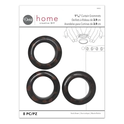 These round curtain grommets allows the user to easily attach the fabric to items such as rods or poles Reinforce the area around a hole cut into any type of fabric or plastic Fit for rods up to 1-3/8-inchs in diameter Available in rustic brown colour Grommet measures 1-9/16-inch inner diameter and comes in 8 per pack