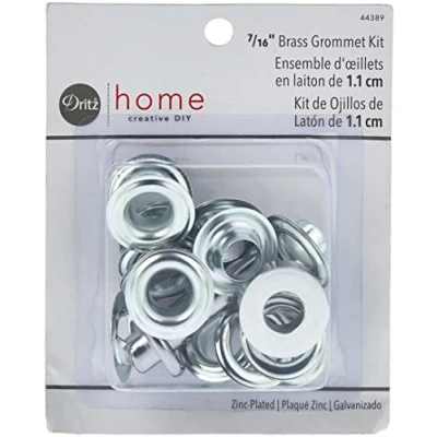 Nickel plated curtain grommet kit Reinforce the area around a hole cut into any type of fabric or plastic Allows the user to easily attach the fabric to items such as rods or poles, for costumes, clothing and purses Available in silver colour Grommet measures 7/16-inch in diameter and comes in 10 per pack