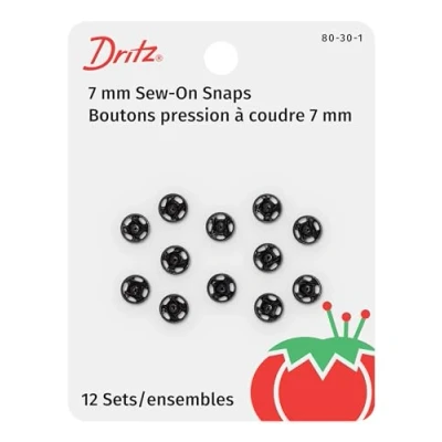 Dritz 80 30 1 Sew On Snaps, Black, Size 3/0 12 Count