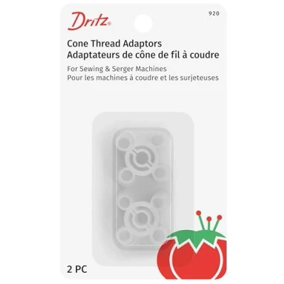 Adapts cones for sewing machines and sergers; Insert Adaptor Into Large End Of Cone Until It Stops; Place Cone On Thread Spindle Pin; Package includes (2) cone thread adapters