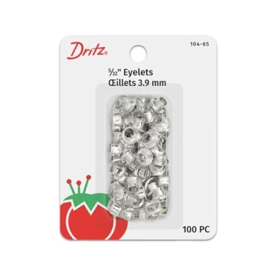 Eyelets can be used for a variety of sewing or art and craft projects Use them on belts, vests, to create laced effects on garments, or even in your scrapbooks Apply eyelets with the Dritz Eyelet Tool (Item # 104T), Dritz Eyelet Pliers (Item # 574), or Dritz Eyelet Kit, (Item # 637-65) This package contains (100) Nickel Eyelets, Size 5/32-Inch Application tools not included