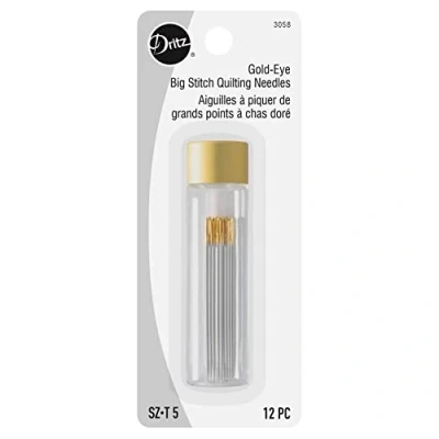 Dritz Gold Eye Big Stitch Quilting Needles, Size 5, 12 Count