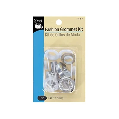 1/2-Inch Inside diameter Kit contains 8 white grommet sets, anvil and setter Smooth, rubberized texture and feel Plastic insert provides stability so that grommets can be used with only 1 layer of fabric Machine washable and dryable - Rustproof