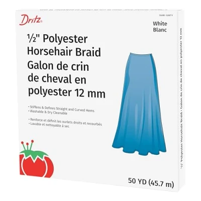 Dritz Horsehair Braid 1/2 x 50yd, White, Polyester, Inch 50 Yards
