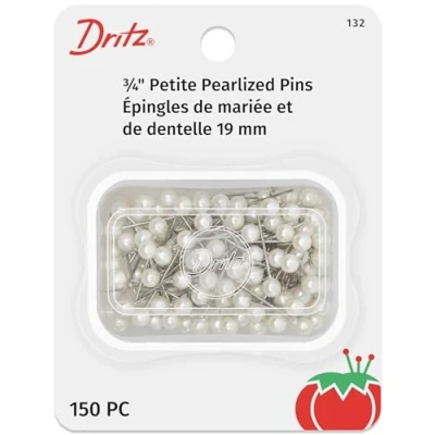 Dritz-Heart Petite Pins Size 12 Perfect for hemming and more This package contains 150 size 12 petite pearlized pins in a plastic storage box Size 12 (3/4") 6mm white Petite Pearlized Pins