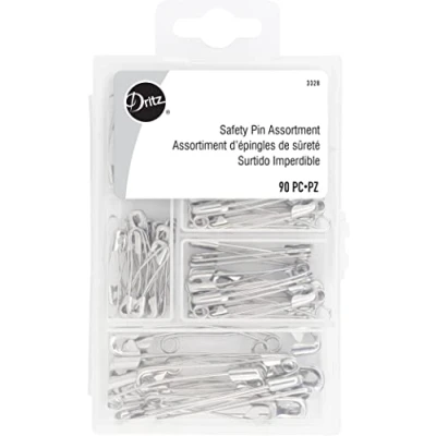Dritz Quilting Curved Safety Pin Assortment 90/Pkg, Plastic Stainless Steel, Assorted, Sizes